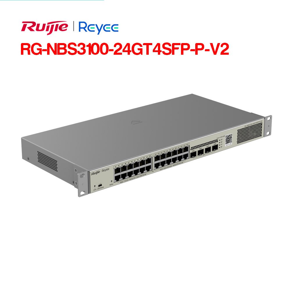 RUIJIE RG-NBS3100-24GT4SFP-P-V2 là bộ chuyển mạch PoE được quản lý 28 cổng gigabit Lớp 2, 4 đường lên SFP, chất lượng cấp doanh nghiệp đảm bảo hiệu suất cao.